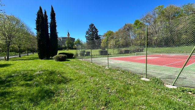 A35901LIS09 - Ground floor apartment (150 m²) in a restored 13th-century château with neo-Gothic architecture, located in Léran, southwest France. Includes 2 bedrooms, a mezzanine, spacious living-dining area, kitchen, bathroom, two WCs, and a cellar. Access to a grand salle des armes, pool, landscaped park, and tennis courts. Set near the turquoise waters of Lake Montbel and just 15 minutes from the charming medieval town of Mirepoix. Spain is only an hour away, and Toulouse International Airport is 1.5 hours by car. A unique property combining history, elegance, and access to nature.