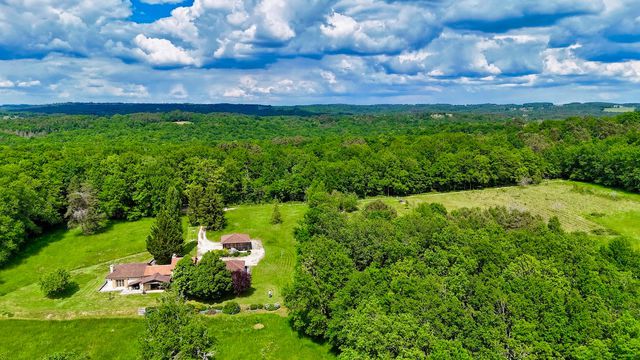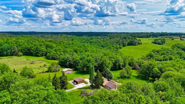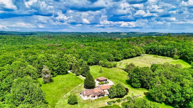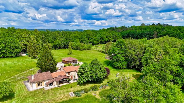 Located in a secluded setting, this farmhouse renovated in 2011 offers 85% of its living space on one level. It comprises a 47 m² living room with ‘Polyflamme' fireplace, a fitted kitchen with wood-burning cooker, a 23.6 m² study and several storage areas. The house benefits from a large plot of 28,000 m², partially wooded and fenced, with a south-facing terrace paved with local stone, offering uninterrupted views.