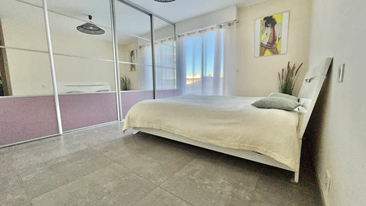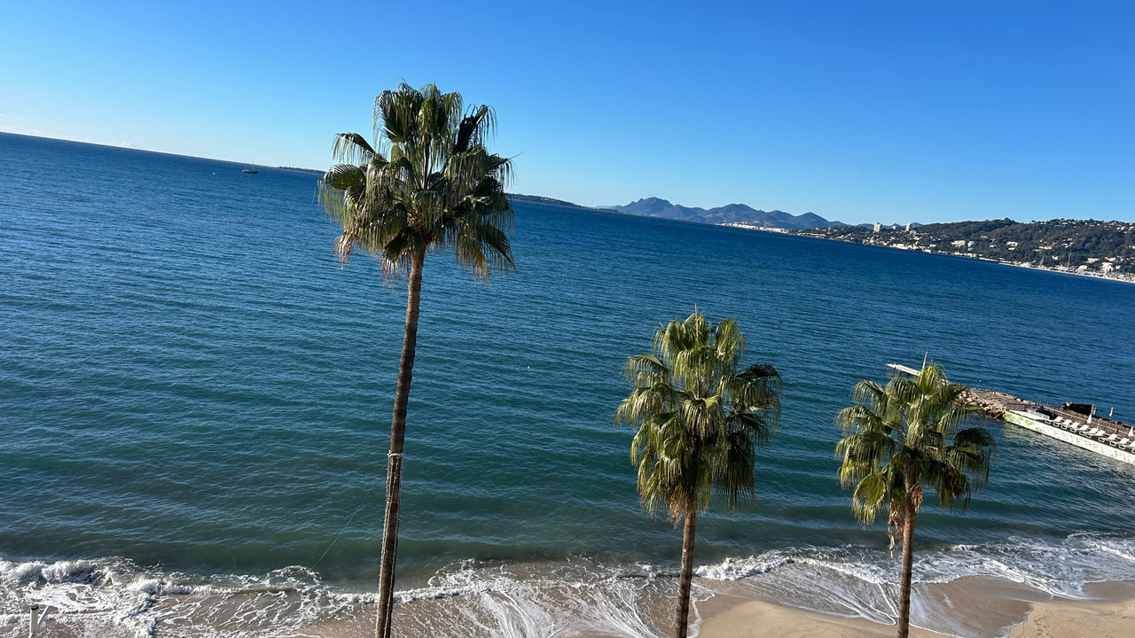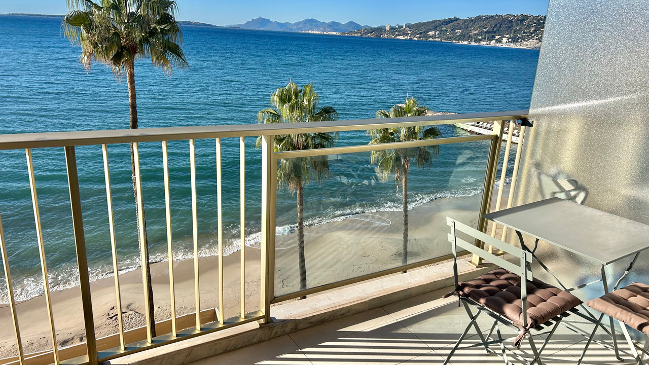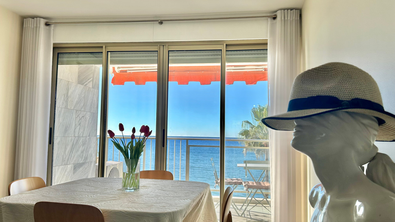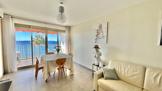 A40491PAK06 - Elegant and fully renovated 2-bedroom apartment of 75 m², located on the 6th floor with elevator. It offers a stunning panoramic sea view and direct access to the beach, within a sought-after residence in Antibes Juan-les-Pins and within walking distance of shops, restaurants, and public transport.