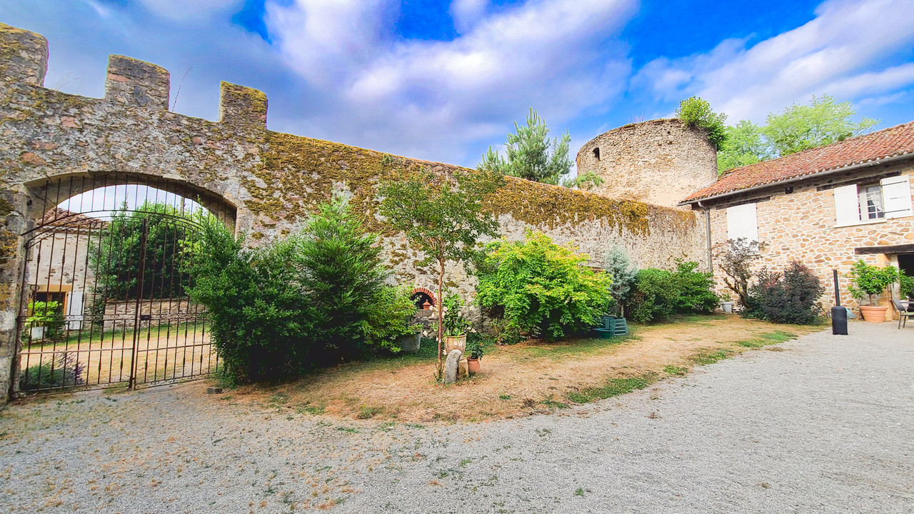 This impressive estate was once part of the adjacent 15th-century château. A living testament to the region's history, the now-independent historic residence is accessed via a private driveway, ensuring peace and seclusion. The property spans nearly 3 hectares, featuring a spacious courtyard and a large, walled private garden.