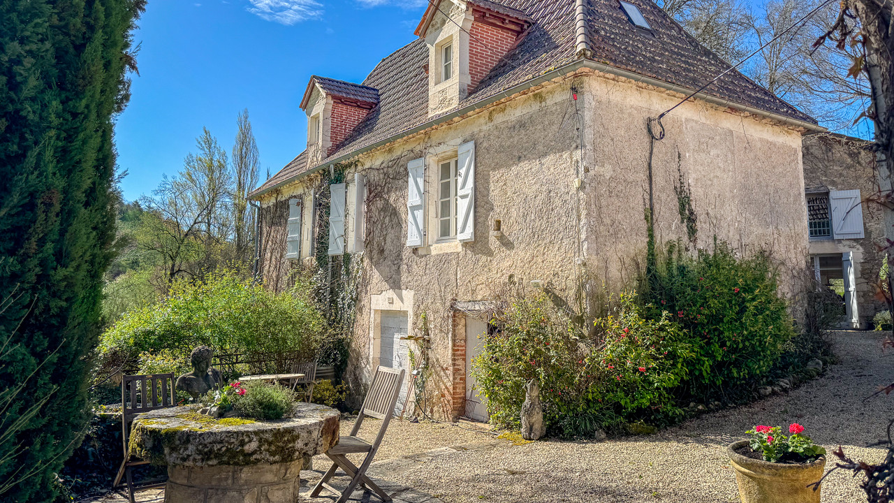 €445,000 ID: 169358This stunning mill property, situated close to the lively village of Prayssac, is a unique offering, featuring two beautifully appointed houses situated along a picturesque stream within mature gardens, complete with a swimming pool.