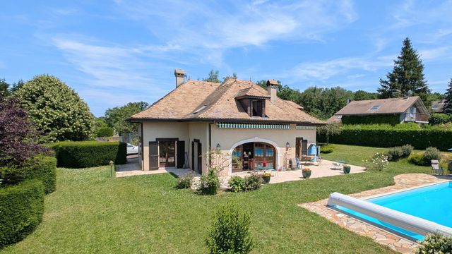 Charming 4-bedroom house in a great location: 2 minutes walk to Lake Geneva and the historic village centre. Ideal for Frontaliers with quick road (30 min), bus, and year-round ferry connections to Nyon/Switzerland. Includes a sunny lounge with access to a wrap-around garden, heated pool (heat pump), terraces, and a double garage. The house features a master bedroom with an ensuite and large dressing room, plus a flexible loft bedroom with potential for a 3rd bathroom. Enjoy lake activities, country walks, and skiing just 45 minutes away. A practical home for French/Swiss living.
