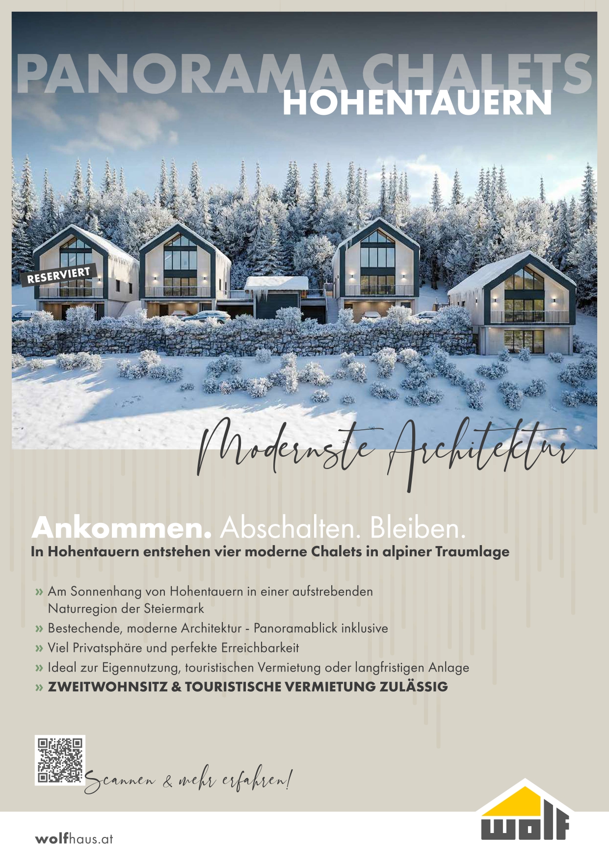 Vier moderne Chalets entstehen in traumhafter Alpenlage in Hohentauern.
