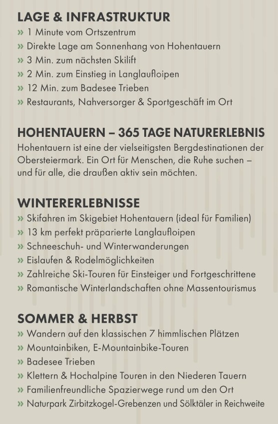 An den sonnigen Hängen der Hohentauern, in einer aufstrebenden Naturregion der Steiermark » Markante, moderne Architektur – Panoramablick inklusive » Viel Privatsphäre und optimale Erreichbarkeit »