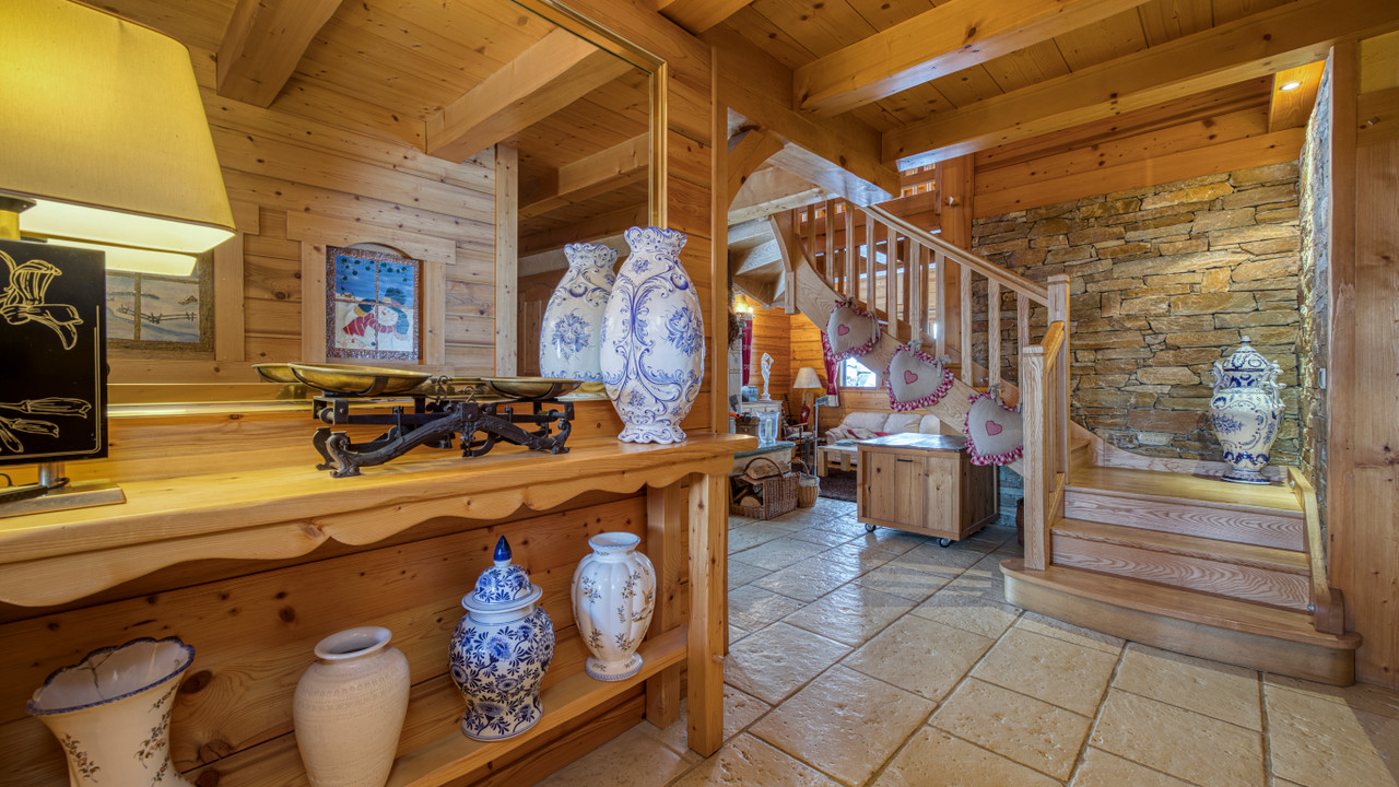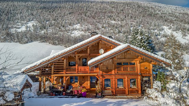 A43788NT74 - Discover this exceptional alpine chalet offering approximately 546 m² of total space (386 m² habitable), combining a substantial main residence with two independent apartments, set within a landscaped plot of 1,617 m² and enjoying uninterrupted views across the Aravis mountains. The property offers excellent lifestyle flexibility, whether as a primary residence, a property with guest accommodation potential, or a combination of both.