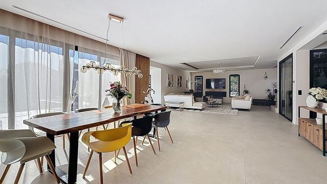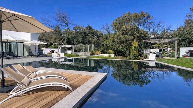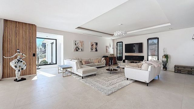 A43326SMG06 - Located in the ultra residential area of Roquefort-les-Pins, this exceptional contemporary villa enjoys absolute tranquillity in a dominant position on beautifully landscaped grounds. Newly built and offering approximately 360 m² of living space, the property combines generous volumes, modern architecture and high end amenities. The villa opens with an elegant entrance featuring a covered porch and a striking glass patio with an olive tree at its centre. The spectacular 120 m² living area, filled with natural light from large bay windows, opens onto expansive terraces and a magnificent infinity pool. The property includes a master suite on the main level and six additional en-suite bedrooms upstairs. A wellness area with jacuzzi and sauna, gym, billiards room and wine cellar complete this luxurious home, along with an independent studio and garage. Ideally located just 20 minutes from Cannes, Nice and the international airport. Information about risks to which this property is exposed is available on the Géorisques website : https://www.georisques.gouv.fr