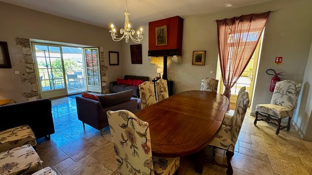 A39349AJ24 - Built in the 12th century as a hilltop lookout fort, this magnificent property is currently used as a chambre d'hote business, but is adaptable and could be used as a large family home. It has a separate 70m2 open plan guest house which was built as a games room, and benefits from double glazing throughout, underfloor heating on two levels, reversible air conditioning on main level, and wood burners in the two principle living areas.