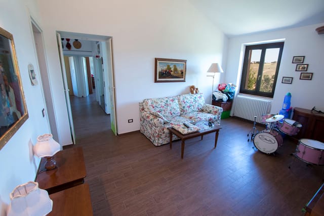 The house is surrounded by a lovely, flat garden of about 4000 sqm, planted and fenced with beautiful views towards the sea and Fermo.