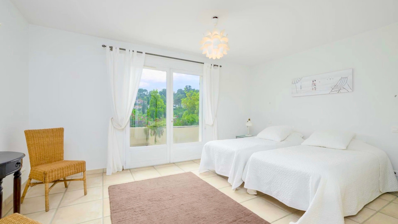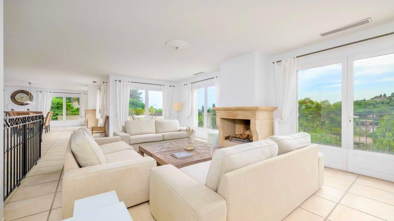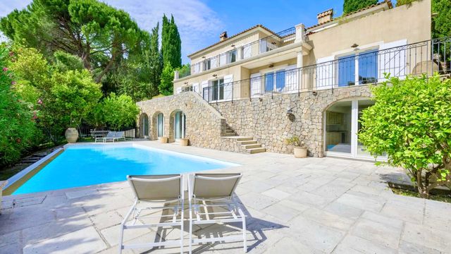 A39570SST06 - MOUGINS – Elegant 5-Bedroom Villa, 297 sqm with Pool & Panoramic Views In one of the Riviera's most prestigious villages, this superb 297 sqm villa offers elegance, comfort and Mediterranean lifestyle. Nestled in a lush, peaceful setting with panoramic hill views, the property is spread over three levels and in perfect condition. The upper floor features a 110 sqm bright living area with fireplace, dining room and open-plan kitchen, opening onto terraces overlooking the garden. The lower level hosts 4 spacious en-suite bedrooms and an office, while the garden level offers an independent studio for guests or staff. Set on a landscaped 1,720 sqm plot facing south-west, the villa boasts a pool, pool house, generous outdoor areas and a large garage. Ideally located just 25 minutes from Cannes and La Croisette, close to international schools and the Valmasque natural park. A rare opportunity combining Provençal charm, modern comfort and Riviera elegance. Information about risks to which this property is exposed is available on the Géorisques website : https://www.georisques.gouv.fr
