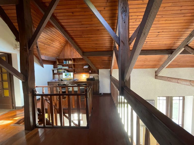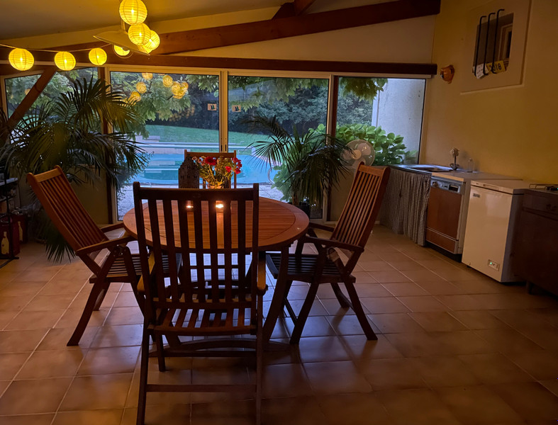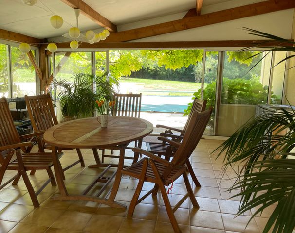 At the heart of the home is a very spacious sunroom, flooded with natural light thanks to large windows on three sides, and offering direct views of the garden and the 10x5m swimming pool.
