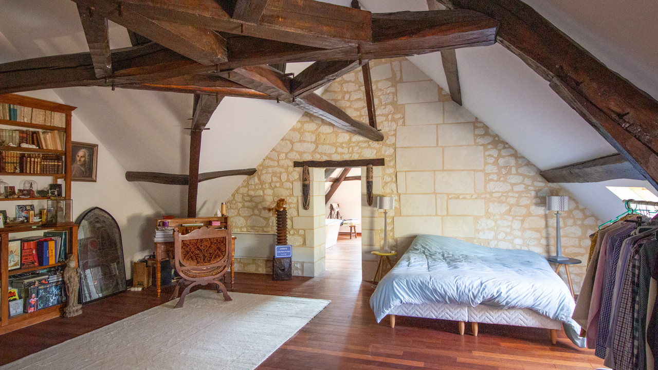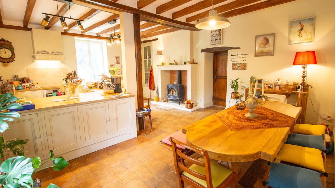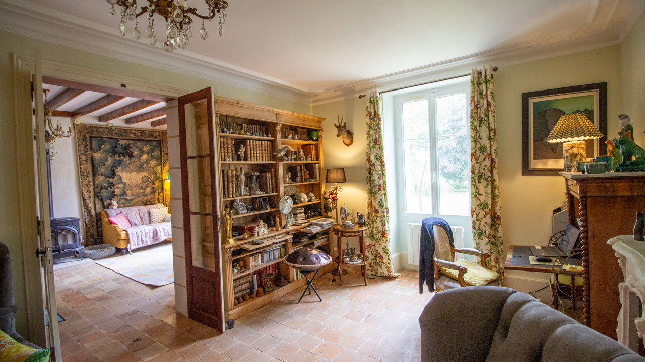 A31835AKB37 - Offering the peace and tranquillity of the countryside yet still close to amenities, this elegant 19th century country mansion with 465m2 of living space, sympathetically combines authentic details like tuffeau stone, tomette floors, exposed beams and wood burning stoves with modern styling and comforts, like travertine tiled floors and underfloor heating. There is the potential to create a further 60m2 of living space.