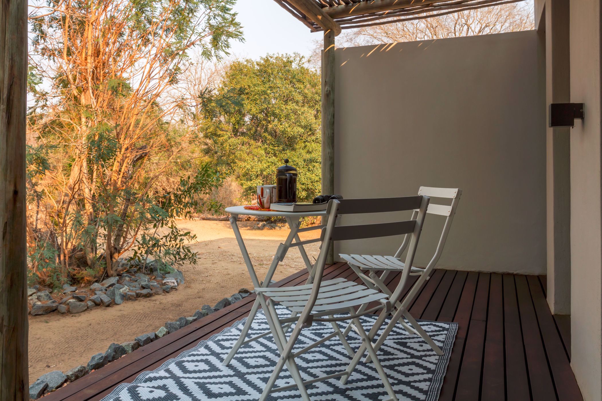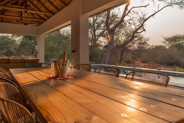 Imagine a beautiful, modern 3 bedroom en-suite home in big game territory, with no neighbours, anchored by two magnificent trees, a Maroela and an Ana Tree, looking out onto the dry river bed and the wilderness beyond… a home where the spaces are in perfect balance with each other, modern, yet warm and inviting… a deck designed to enjoy all that nature has to offer with many a magical moment to capture... listening undisturbed to birds while sipping your morning coffee and/or evenings spent around a bushveld fire in the boma where your ears are tuned to the calls of hyena, jackal, lion and leopard.