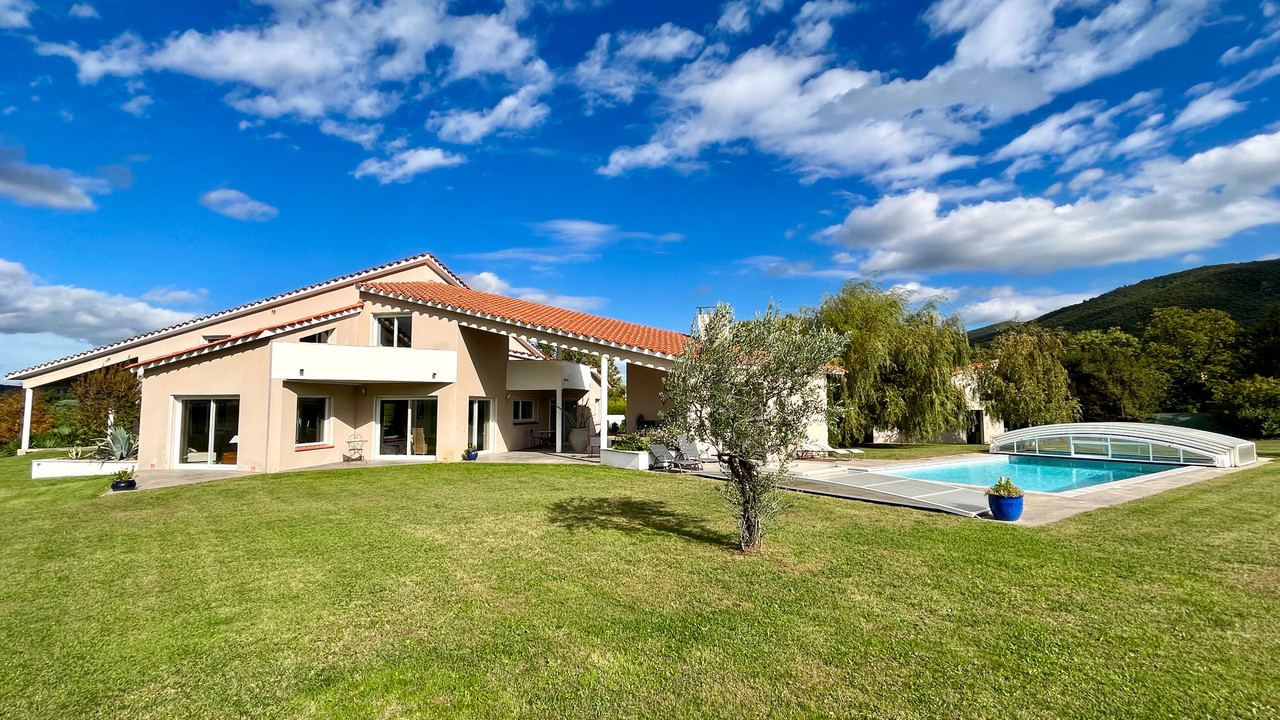 This modern villa is a rare and unique in this area and just minutes from the lively village of Vinça that has amenities, swimming lake and a train station, situated between the sea, 42km and the ski which 36km to the closest ski station. The cultural city of Perpignan is 31km (25 minute drive), which has an international airport and train station with TGV train links to Barcelona