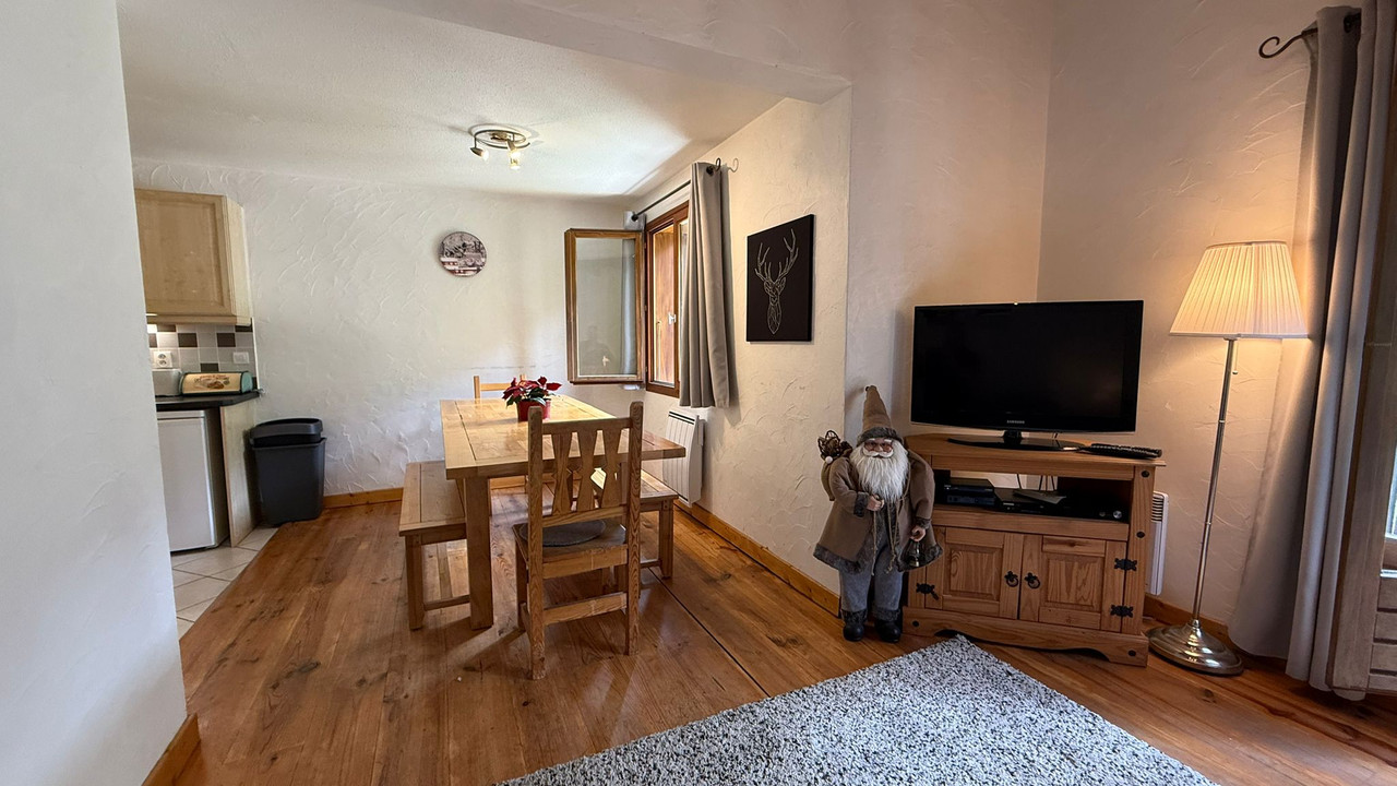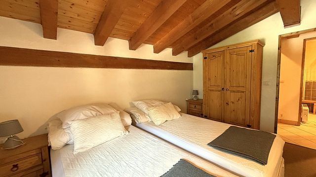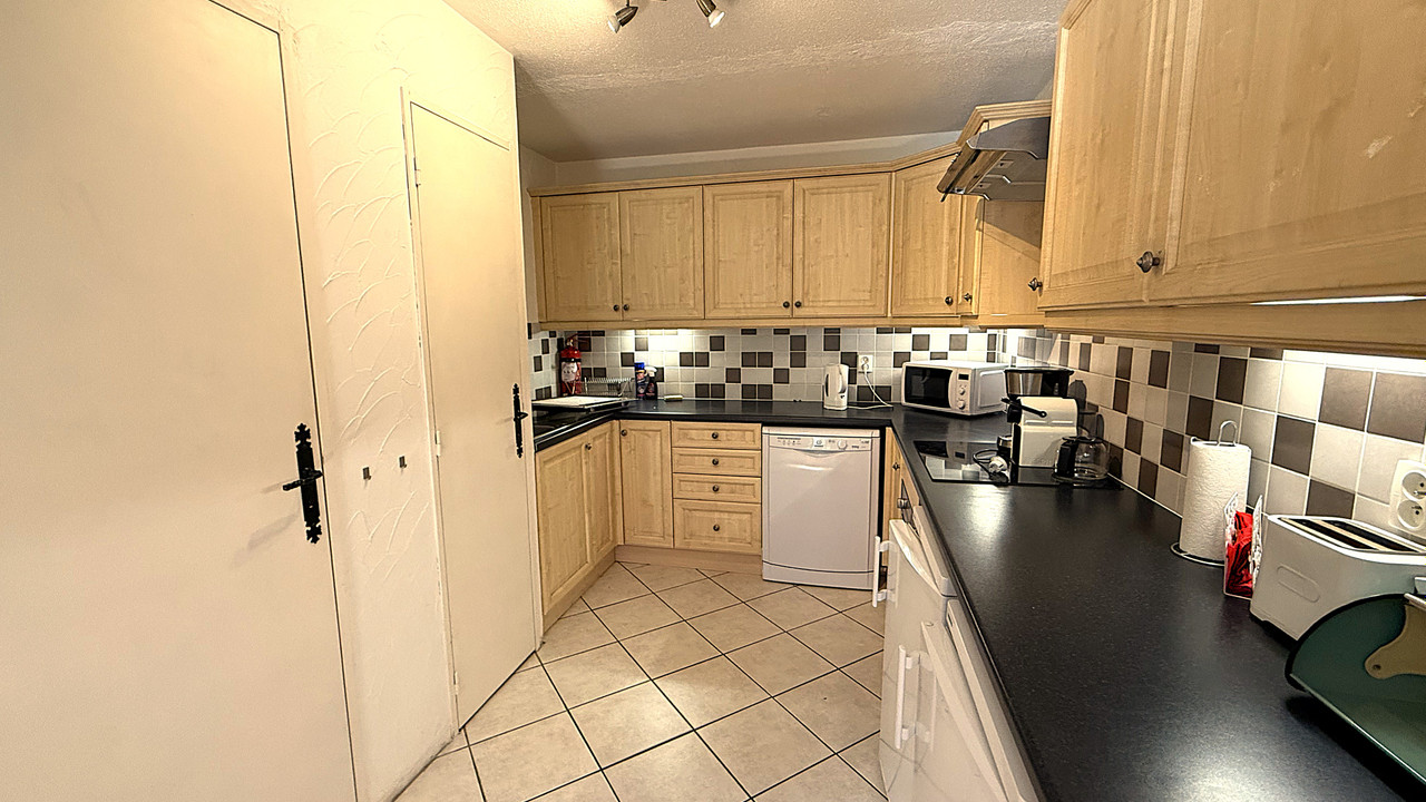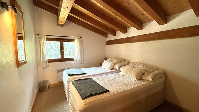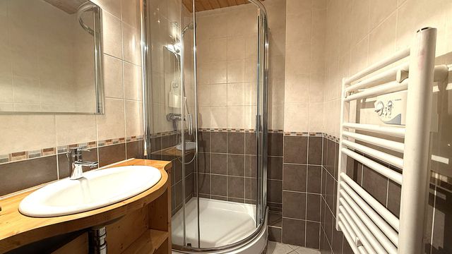 Nestled in the heights of the picturesque hamlet “Les Brevieres”, the gateway to Tignes, this top (3rd) floor apartment boasts 85.15 m² of habitable surface area (with an extra 8.73 m² under the eaves – under 1.8m in height). It has 3 bedrooms, 2 shower rooms, 2 WCs and a large open plan kitchen, living and dining area. It benefits from a private garage with additional large secure storage area. 180˚views from the sunny west facing balcony across the hamlet towards the pistes, the lake and surrounding mountains are simply breath taking.