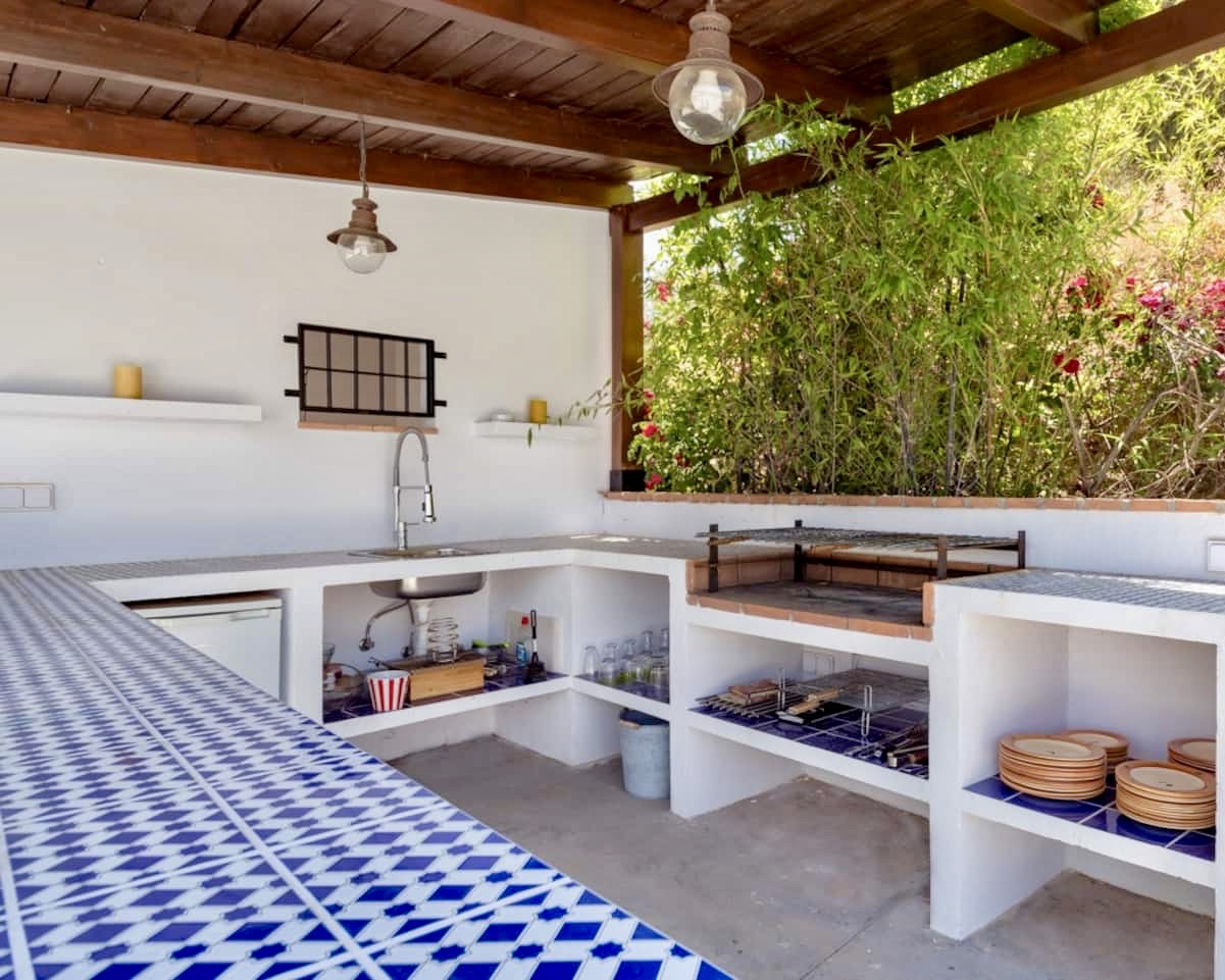 From the living room stairs lead up to the ensuite master bedroom, a large bright room with high ceilings, whitewashed walls and terracotta floors. Doors on one side open on to a small terrace.