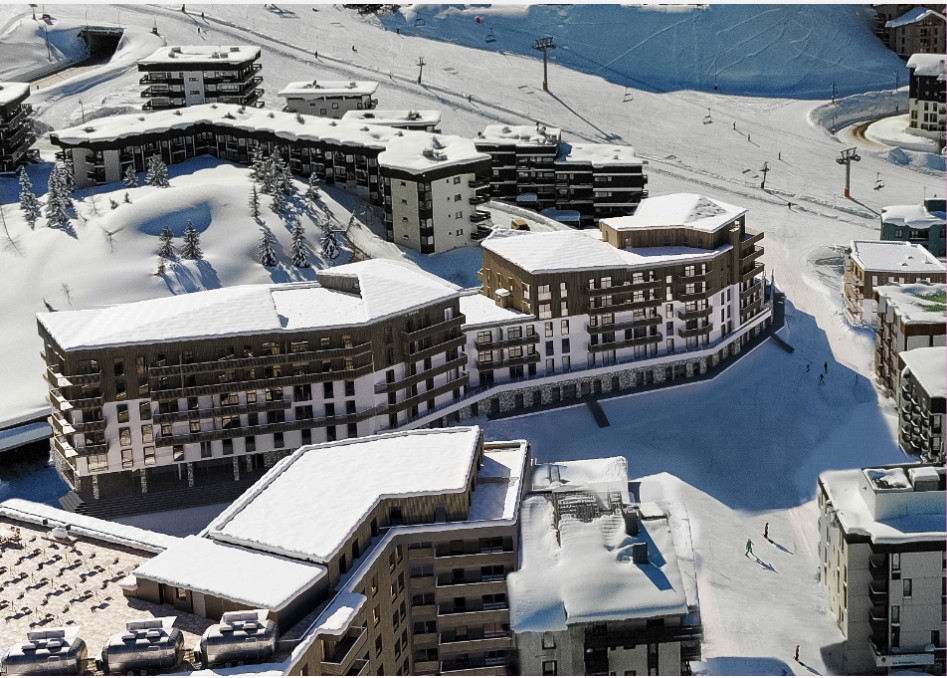 A39676JQB73 - There are 15 apartments available in this new off-plan resort development, located next to the piste in High Altitude Tignes and 100% Ski In Ski Out. Prices range from 745,000€ to 1,900,000€, with options from a one-bedroom plus cabine bedroom unit (45m²) up to three bedrooms plus cabine (101m²).