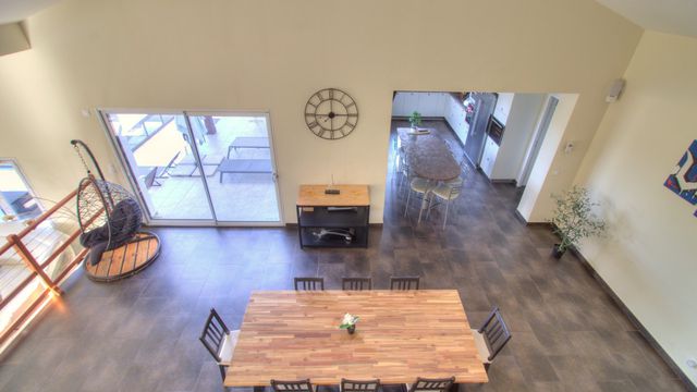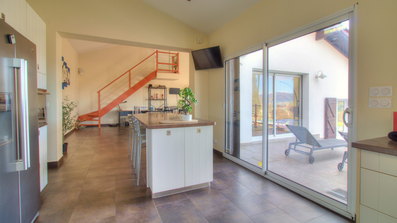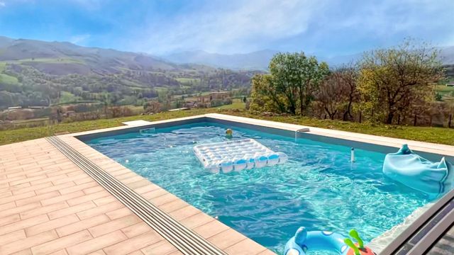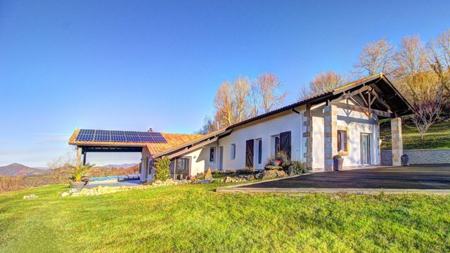 A41947CEL64 - Do you dream of living in the Basque Country and waking up to magical mountain views every day? If that is your dream, then this superb architect-designed hillside villa is exactly what you're looking for... over 200m² of stylish contemporary living space... a heated saltwater swimming pool... and breathtaking panoramic views of the Pyrénées! And for that added touch of luxury, you can look forward to spending time in the jacuzzi and sauna in this splendid property's unique spa room... Currently used as a holiday home, the villa is absolutely ideal for a fabulous family home, which can be moved into immediately! It could also be rented out on a long-term basis or as a gîte for holidaymakers, who will love being close to Pyrenean ski resorts and chic beach resorts on the Atlantic coast. In addition, this wonderful dream villa is just 15 minutes away from the picturesque town of St-Jean-Pied-de-Port - and only a short walk from a shop and bar-restaurant in the local village... Information about risks to which this property is exposed is available on the Géorisques website : https://www.georisques.gouv.fr