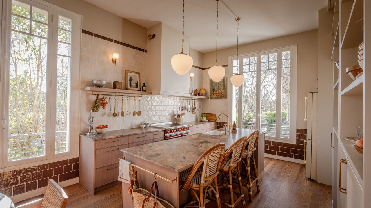 Stunning, art deco style town house with independent gite, garden and heated swimming pool.