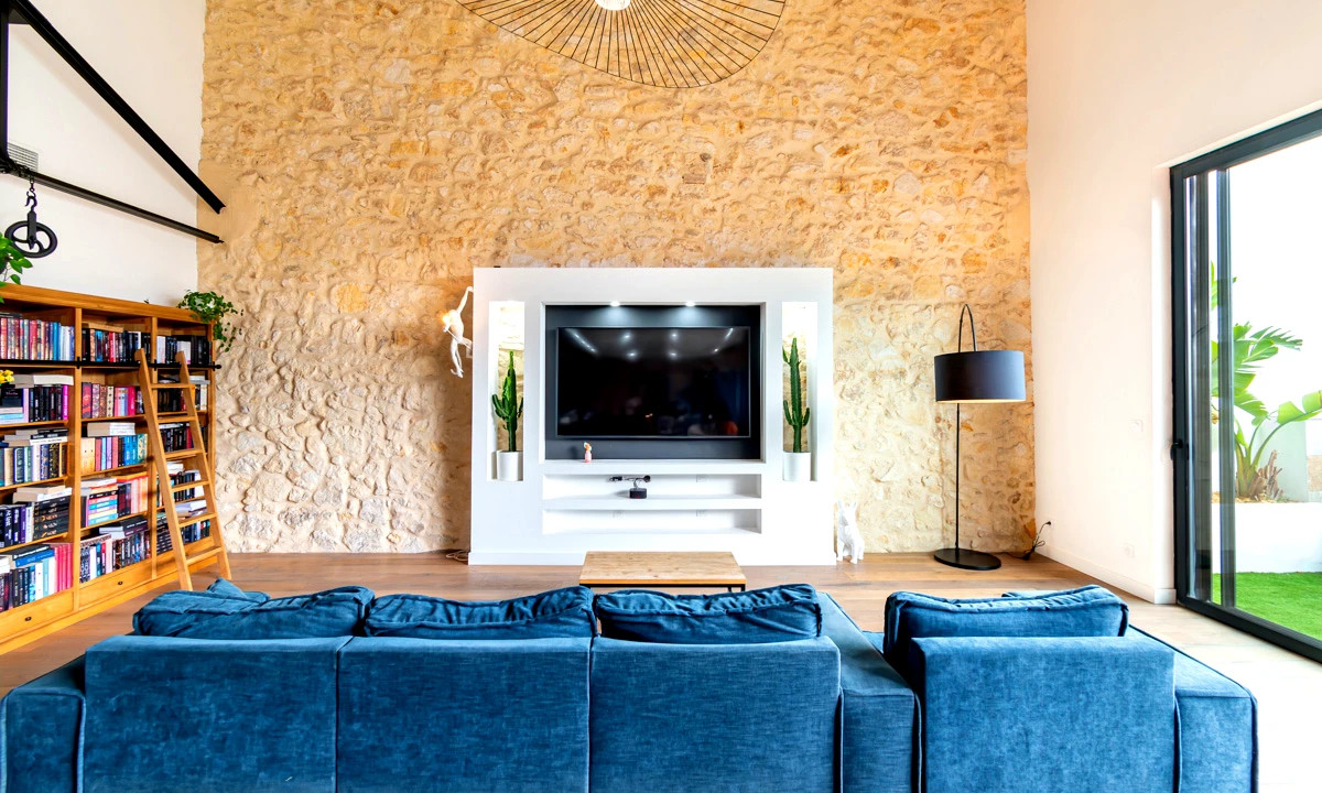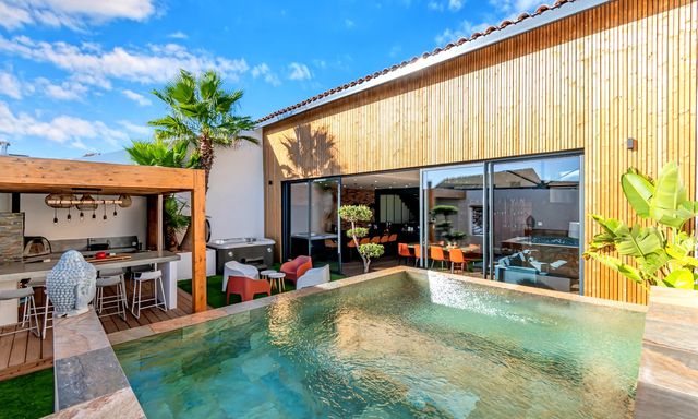 A41177CYV11 - This spectacular contemporary home was created by transforming a former wine cellar into a unique architect-designed loft. The result is an extraordinary living space of over 200 m² centred around a breathtaking 75 m² cathedral-style living room. Renovated between 2021 and 2024, it combines industrial heritage with refined design. Instead of a traditional garden, the house offers a large private terrace of around 100 m² with heated infinity pool, jacuzzi and outdoor kitchen – designed for outdoor living. Four bedrooms including a master suite, a wine cellar and a utility room complete this unique property. The exceptional 150 m² garage offers space for several vehicles and could also serve as a workshop, studio or gallery. Coursan is a lively village just 10 minutes from Narbonne and 25 minutes from the Mediterranean beaches. Perfect for design lovers, families, remote professionals, couples who enjoy entertaining — an exceptional main or secondary residence in the South of France.