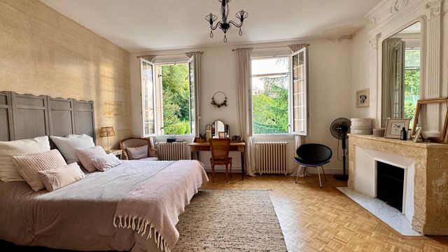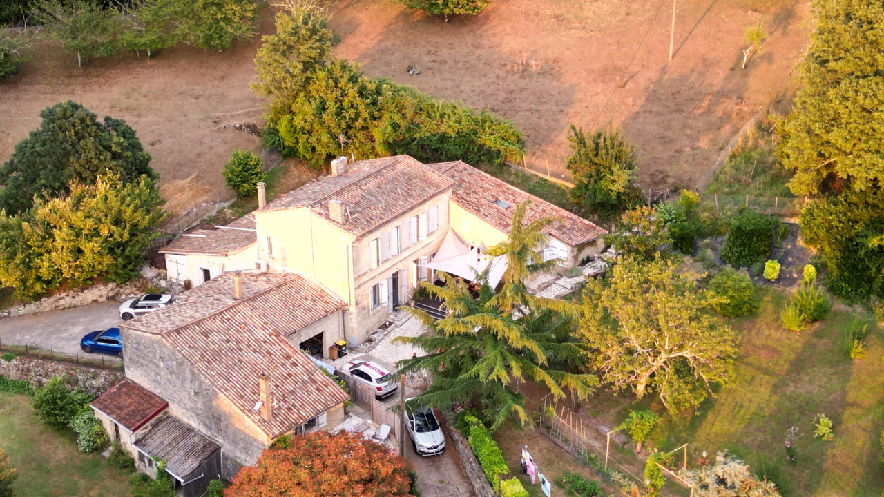 A40519MGD33 - Exceptional stone property comprising 4 bed main house plus separate gite/guest house, outbuildings/hangar & almost 3 acres of land. In the main house, entrance hall, large lounge with fieplace, beautiful dining kitchen, 4 bedrooms, 2 bathrooms, office/mezzanine, courtyard. Separate 1 bed (possibly 2) gîte with good rental potential. Large outbuilding. Stunning views. Near the village of La Rivière, close to Fronsac & Libourne.