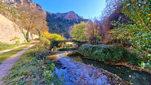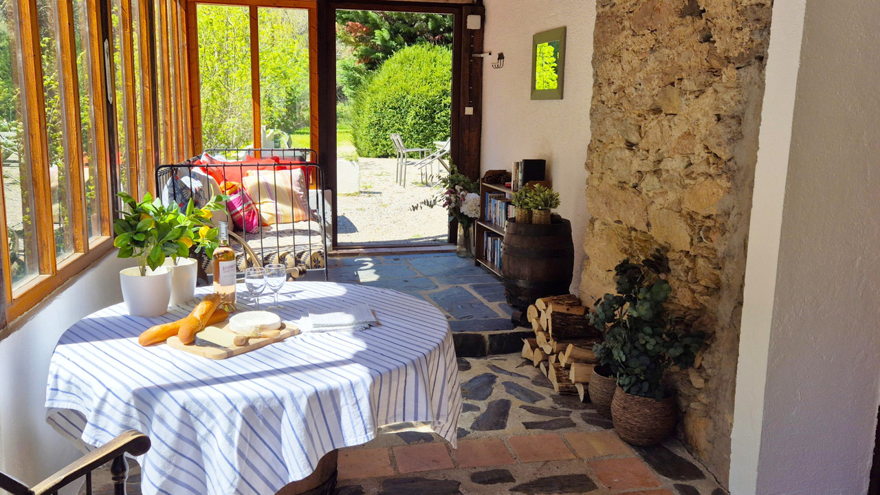Set along the tranquil banks of the river Argent-Double, the estate blends history and nature perfectly: ancient stone bridge, dramatic cliffs and lush greenery create a peaceful, natural atmosphere, while nearby the historic village of Caunes-Minervois — with its vineyards, local markets, artisanal shops, 9th-century abbey and restaurants , offers all conveniences just minutes away.