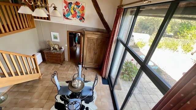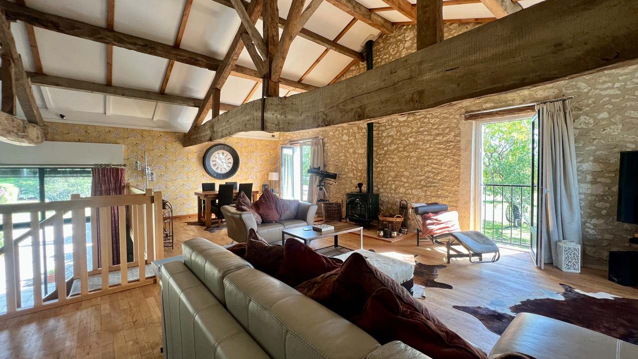A40316VGR24 - Set in the Dordogne countryside, this beautifully converted stone barn combines French character with modern comfort. With six bedrooms, four bathrooms and generous living spaces, it is ideal as a family home, holiday retreat or rental. The south-facing gardens feature a 10m x 6m heated and cooled saltwater pool, terraces and a summer kitchen perfect for entertaining. Inside, highlights include a dramatic double-height dining room, a fully fitted kitchen with granite work surfaces, pantry and utility, and an impressive mezzanine lounge with exposed beams and Jotul wood burner, opening onto a terrace with pool views. Just 3km from Château des Vigiers with golf, spa and Michelin dining, and close to the markets of Sainte-Foy-la-Grande and Issigeac, this property offers an exceptional Dordogne lifestyle. Bergerac airport is 25 minutes away, Bordeaux just over an hour, and St Emilion 45 minutes. Information about risks to which this property is exposed is available on the Géorisques website : https://www.georisques.gouv.fr