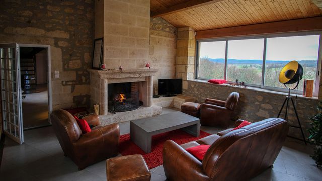 A36368MK33 - In the beautiful hilly region of ENTRE-DEUX-MERS - so called "Little TOSCANY OF FRANCE" - close to SAINT-EMILION and not far from BORDEAUX, well hidden from view or other disturbances, you will discover this beautiful property of two houses linked by a passageway that opens onto a south-facing terrace with panoramic views! Below, a beautiful swimming pool overlooking the forest! No obstacles, no roads, no neighbors to disturb you! In short, a perfect location for lovers of silence and nature!