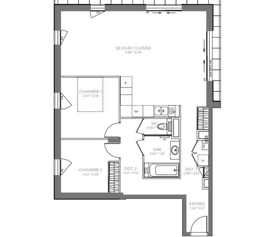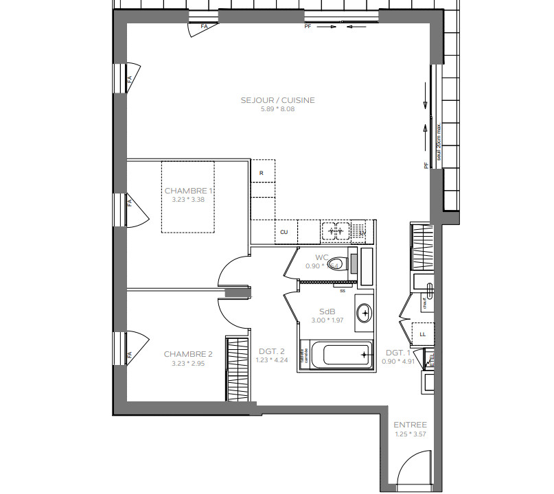 The apartment comprises a contemporary living room, a cosy lounge and a modern, fully equipped open-plan kitchen. There are also two welcoming bedrooms and an elegant bathroom.