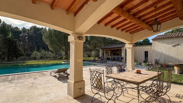 A41953GLG13 - Located in a sought-after area of Trets, this exceptional property stands out for its generous areas, absolute tranquility, and unspoiled setting. Offering 269 m² of living space, complemented by a large basement an independent annex, and multiple flexible areas, it is ideally suited for a large family, entertaining, or a mixed residential and professional project. Set on a 4,358 m² landscaped plot, the property features outstanding outdoor amenities including an infinity pool, pool house, spacious terraces, and a pétanque court. Modern comfort features complete this rare opportunity in the area. Information about risks to which this property is exposed is available on the Géorisques website : https://www.georisques.gouv.fr