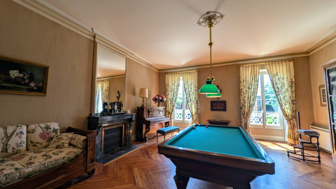 It spans 640 m2, with large outbuildings facing it, including a former 100 m2 stable, tack room, orangery, workshops and rooms upstairs. The buildings are truly remarkable, with half-timbering and brick decorations and bluish earthenware inserts to great effect.