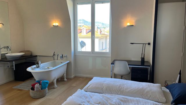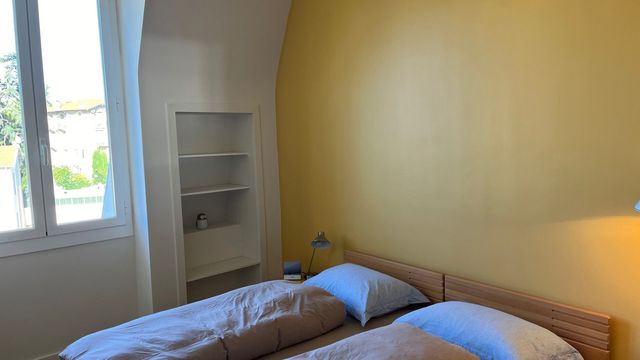 Top floor apartment 83m², 3 room, 2beds, 1 bed with bath + 2nd bathroom. parking & cellar.