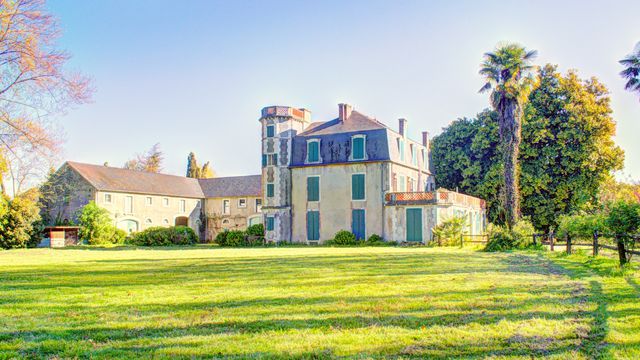 Located within walking distance of a village with a boulangerie, shops, restaurants and a pub, the château is just 15 minutes away from Pau, its International School and the HQ of TotalEnergies; ski resorts in the Pyrénées are 55 minutes away; Biarritz and chic Atlantic beach resorts are 90 minutes away...