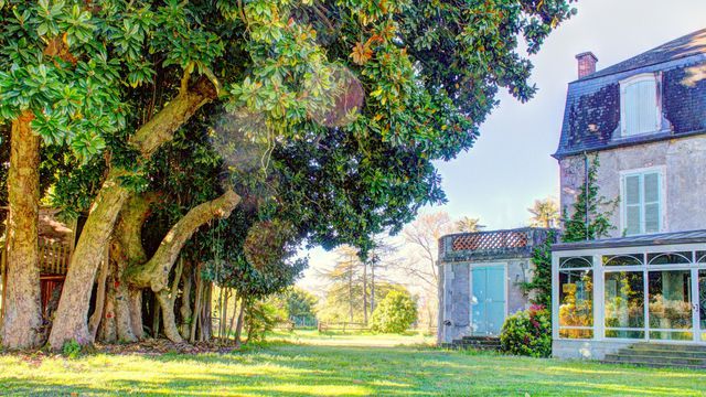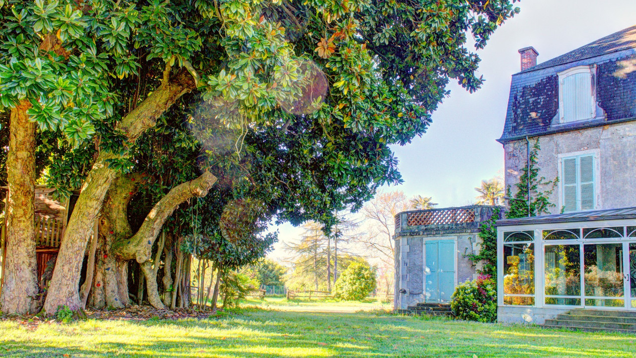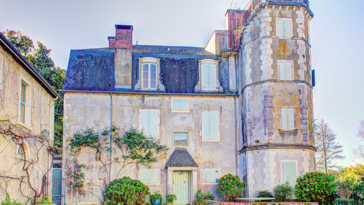 A43940CEL64 - Located just 15 minutes away from Pau, this unique château is surrounded by 1.5 hectares of delightful woodland grounds and has a superb saltwater swimming pool, a gîte ready to rent out, a cottage to renovate and three barns (one of 200m² x 2).