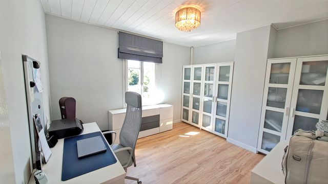 Set in a quiet location, the house is approached via a secure gated entrance and benefits from a private driveway and garage. Inside, the generous accommodation includes five spacious bedrooms and four bathrooms, providing flexibility for family living and guest accommodation. The interiors are bright, airy, and well-proportioned, with underfloor heating ensuring year-round comfort.