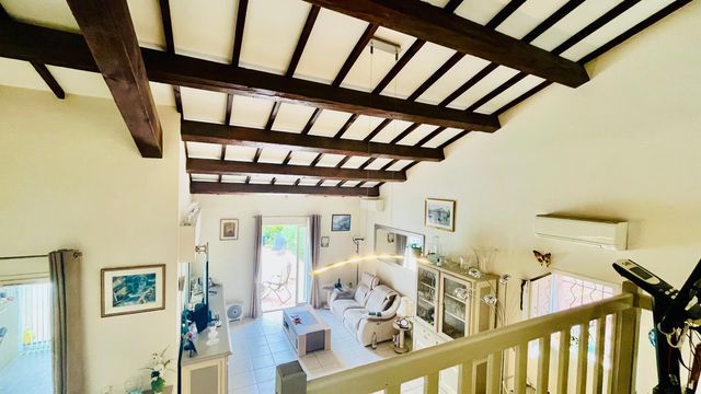 A39347NEM83 - Dans le quartier prisé des Golfs de Valescure, cette villa provençale de 170 m² séduit par son calme, sa luminosité et son terrain paysager de 802 m² avec piscine. Elle propose un vaste séjour avec cuisine ouverte, un bureau, ainsi qu'une suite parentale de plain-pied. À l'étage, trois suites confortables et une pièce polyvalente complètent l'espace nuit. Deux studios indépendants entièrement équipés offrent un fort potentiel locatif ou un accueil idéal pour les invités. Terrasse couverte avec cuisine d'été, garage, forage, climatisation réversible et fibre Internet viennent parfaire ce bien rare proche des golfs et des commodités.