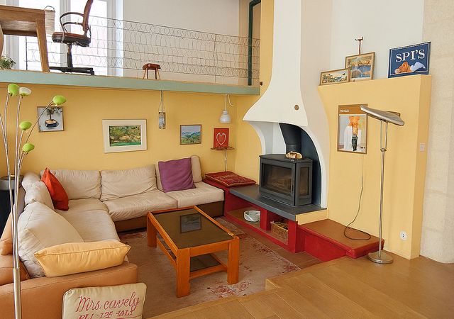 The main house features a fitted kitchen that opens onto the living area; and a vast lounge with fireplace and wood-burning stove