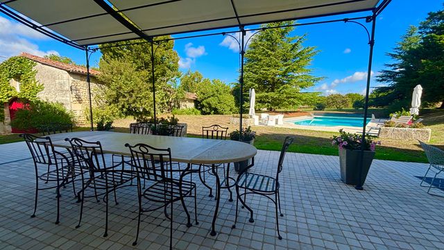 A39725NKA16 - Built in 1764, this magnificent, carefully renovated mansion combines authentic charm with modern comfort. Located on the edge of a village, close to all amenities and just fifteen minutes from Angoulême and its TGV railway station (Paris in less than 2 hours, Bordeaux in 30 minutes), it enjoys an ideal location, while offering peace and quiet, privacy, and a preserved living environment.