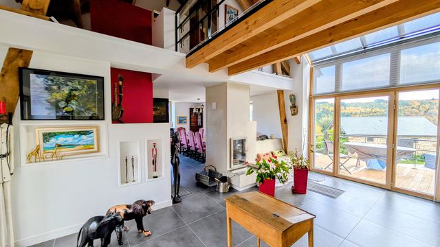 A41108JNK23 - This is a rare opportunity to purchase not just one beautifully renovated house, but two! The original barn has been transformed into a sleek, modern home with luxury fixtures and fittings throughout. No expense has been spared in its transformation - it even has its own sauna room and a large balcony overlooking the pool. The farmhouse is decorated in a traditional style and offers generous accommodation with 3 bedrooms, an outdoor kitchen and vaulted cellar. The property also has a separate garage with a small artist's atelier above. Outside there is a terrace and garden and land, which overlooks the river valley in the distance. This is truly a breath taking property with no work needed. Information about risks to which this property is exposed is available on the Géorisques website : https://www.georisques.gouv.fr