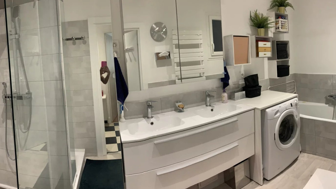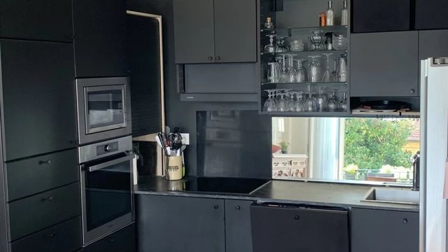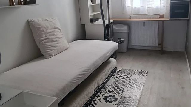 3rd floor apartment (out of 6). 82m², 3 rooms, 2 bedrooms, 1 bathroom, closed garage.