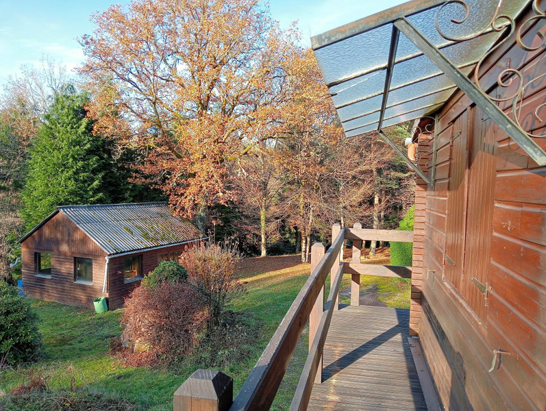 204.120 € ID: 176400For lovers of peace and quiet and unspoilt nature: natural property with a river running through the beautiful 2.8-hectare grounds: a large, spacious, bright, single-storey chalet, a garage, an outbuilding, a stone shed, a greenhouse and parking.
