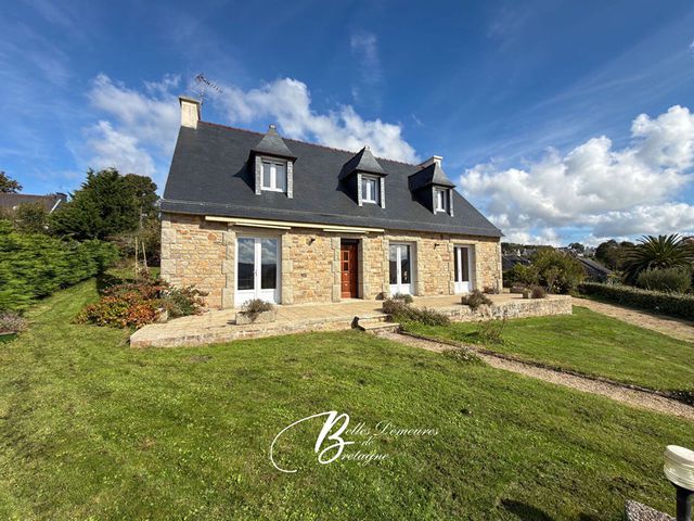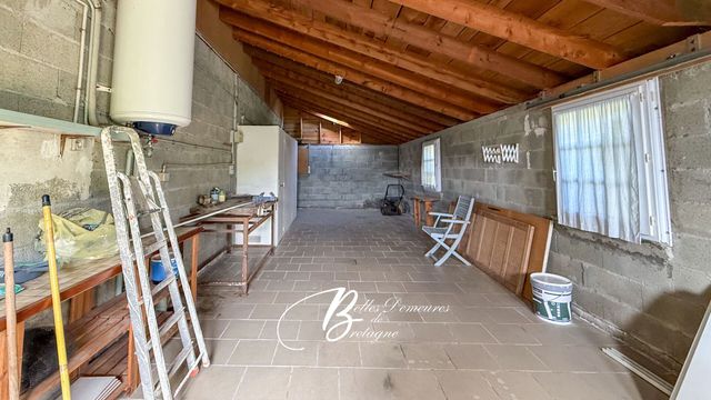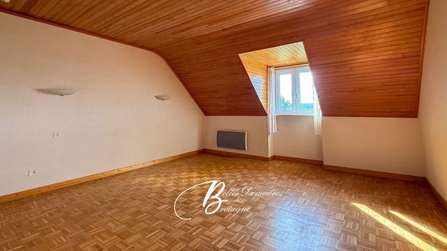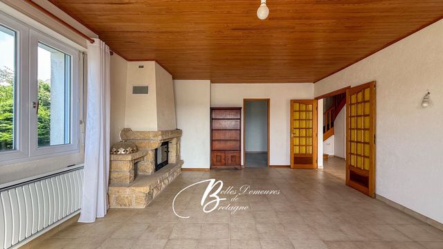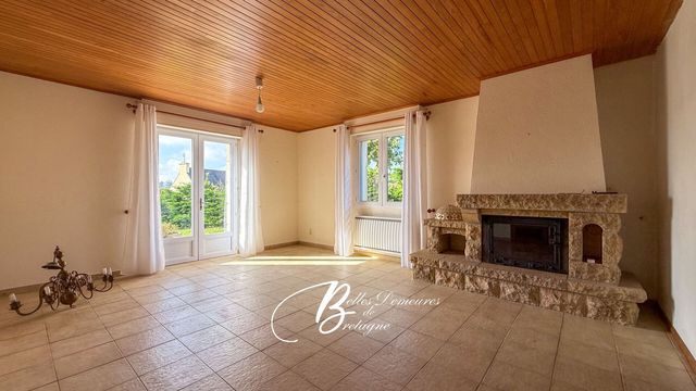À seulement 4,5 km du centre de la charmante commune de Le Faou réputée pour sa qualité de vie, cette maison propose 180 m² habitables. Au rez-de-chaussée, une entrée mène à une première pièce faisant office de salle à manger, ouverte sur le sud, avec cuisine intégrée et espace dînatoire. Un salon avec cheminée complète cet espace convivial.
