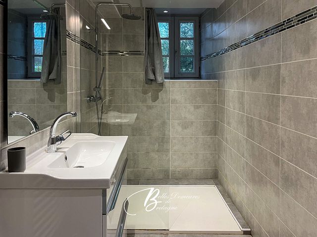 Descriptif : La longère se compose, au rez-de-chaussée, d’un séjour équipé d’un poêle à bois, prolongé par une spacieuse cuisine-salle à manger agrémentée d’une cheminée. Une salle d’eau, des toilettes ainsi qu’une buanderie avec chaufferie complètent ce niveau. À l’étage, vous trouverez cinq chambres, deux salles de bains et des toilettes.