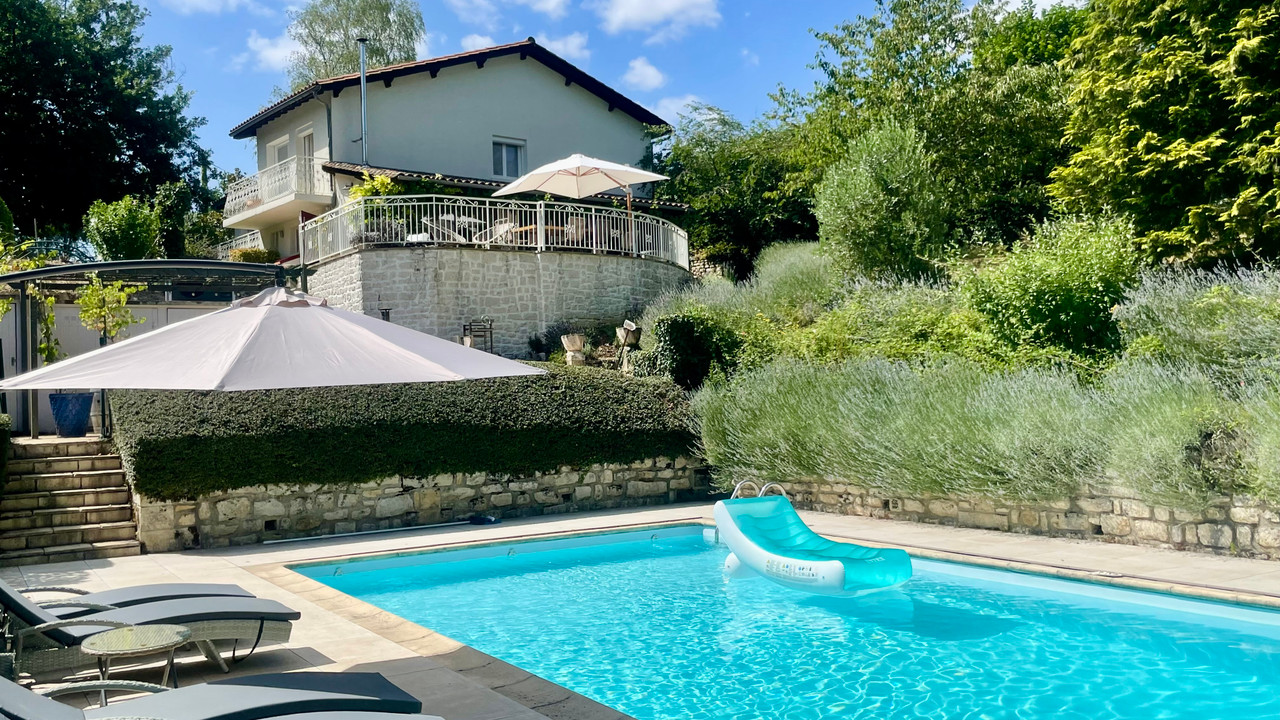 First of all by its location! Close to Saint-Emilion, at the end of a small hamlet, without direct neighbours, in a quiet area, with a magnificent view of the vineyards! Then, the A-typical house - 180 m², 3 bedrooms, 2 shower rooms - and its magnificent pool area (heated by heat pump)! Here you are in your own Paradise, away from stressful life! Ideal for recharging after a long day at work, or on weekends and holidays!
