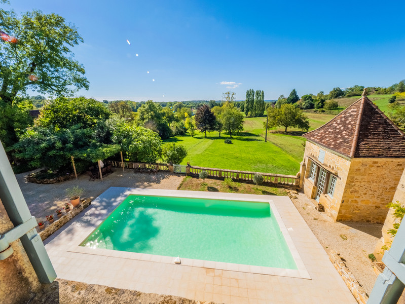 An C18th Manoir in a commanding position, beautifully restored, with a high terrace, pool and lovely