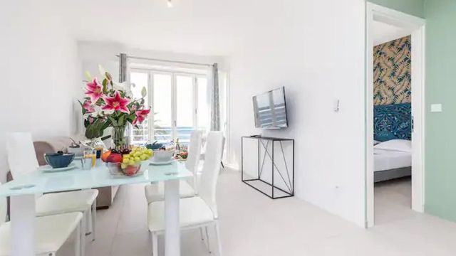 A40214ATB06 - Supern apartment with sea view In a beautiful luxury building ideally located on the Promenade des Anglais, on the 3rd floor with elevator, discover this magnificent 3-room apartment completely renovated with terrace.