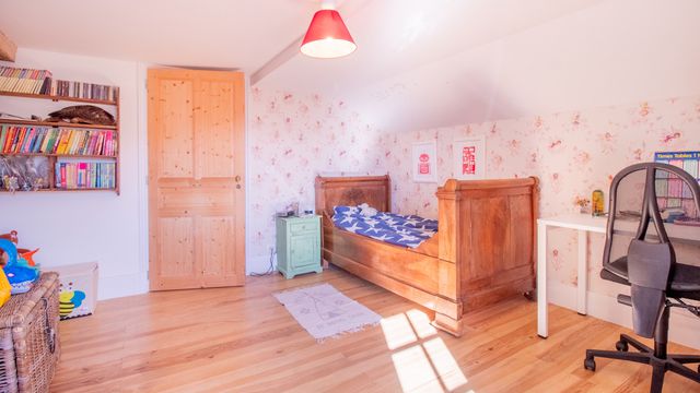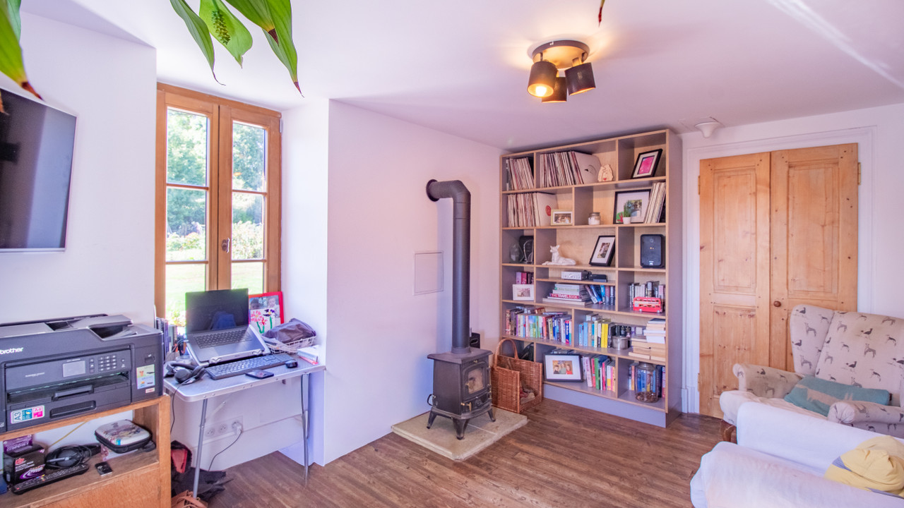 Main house (200 m²): large living room with wood-burning stove, open-plan kitchen opening onto a terrace and south-west facing garden, a very bright study with wood-burning stove, 4 bedrooms including a master suite, guest area with 2 en-suite bedrooms.