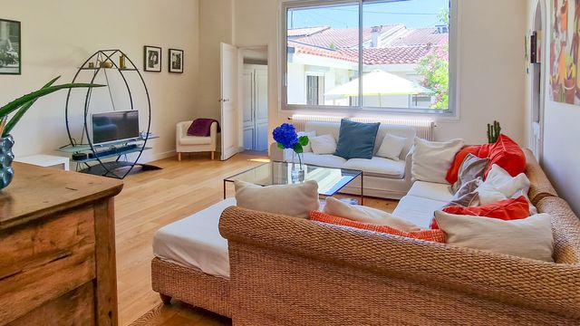 A38086GM33 - Located in the highly sought-after Saint Bruno / Judaïque district of Bordeaux, this elegant 176 m² stone townhouse combines historic charm with modern comfort. Set on a quiet street, the home offers generous volumes and a private courtyard with no overlooking neighbors. The main level features a bright living room, a dining area, and a fully equipped independent kitchen that opens directly onto the peaceful courtyard—ideal for outdoor dining or relaxing. A laundry room, guest WC, and a spacious bedroom with an en-suite bathroom (bathtub and walk-in shower) complete this level. On the lower garden floor, you'll find two additional bedrooms with built-in wardrobes, a large office or potential fourth bedroom, a modern shower room with WC, and access to a cellar for storage. A parking space is available just steps away. Ideally located near top-rated schools such as Bordeaux International School, École Sainte-Marie, and Lycée Saint-Joseph de Tivoli.