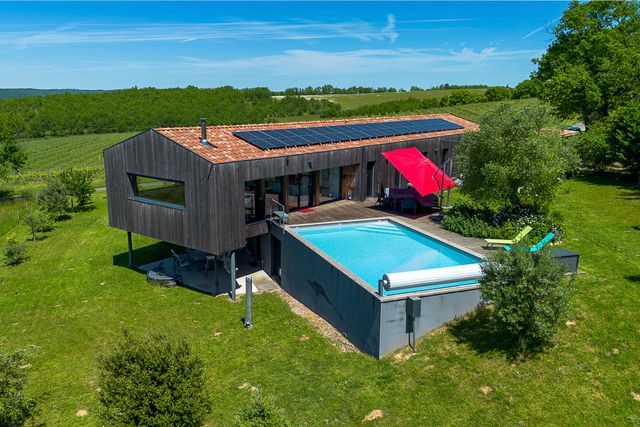 Breathtaking modern retreat with pool, panoramic views & sustainable design in an idyllic Lot Valley