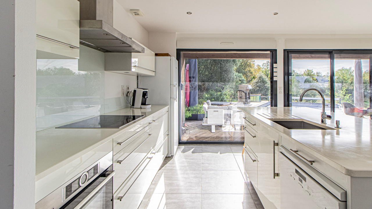 A40988SGU46 - A home that embraces sunshine, calm, and sweeping greenery at every turn. Thoughtfully designed for effortless living, this haven feels open, airy, and beautifully connected to nature. Generous volumes, peaceful corners, and crafted finishes create an atmosphere of modern ease, while large glass openings invite the outdoors in.