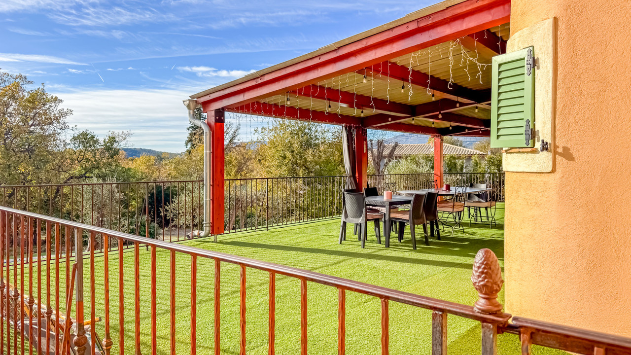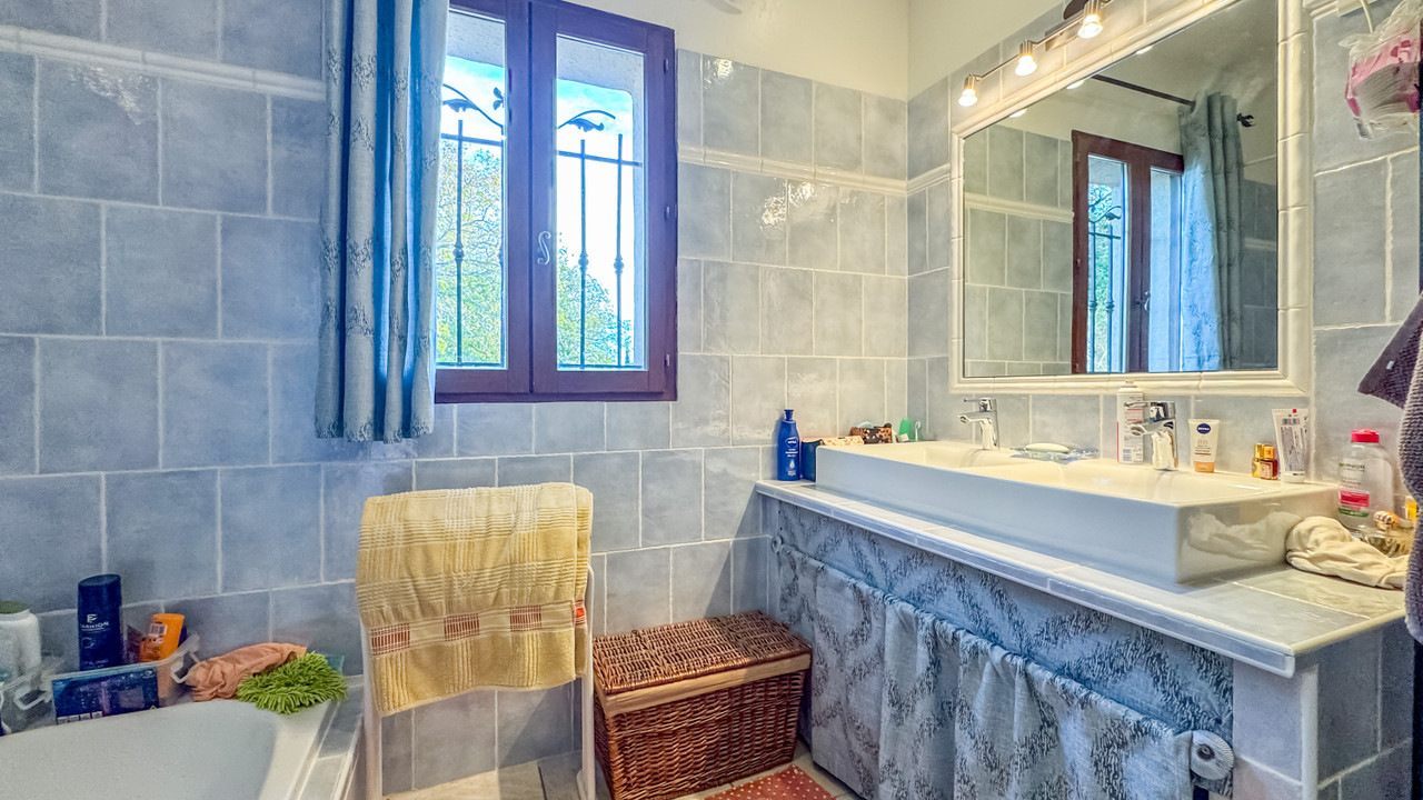 A41498ALK06 - Discover a bright and spacious 169 m² villa set in a peaceful environment in Saint-Cézaire-sur-Siagne. The ground floor offers a large open living/dining room with fireplace, an open fitted kitchen, a utility room, three bedrooms including a superb master suite, two bathrooms and a covered terrace extending the living area outdoors. Upstairs, a mezzanine and an additional room offer ideal space for a home office, home theater or guest accommodation. The property includes a pool, mature garden, garage, carport and ample storage. Surrounded by nature yet close to the village, schools, shops and the Riviera's business hubs, this villa delivers a lifestyle combining comfort, space, fresh air and connectivity. Perfect for families and professionals seeking a new rhythm of life on the Côte d'Azur back-country.